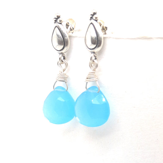 Aqua Chalcedony Post Earrings