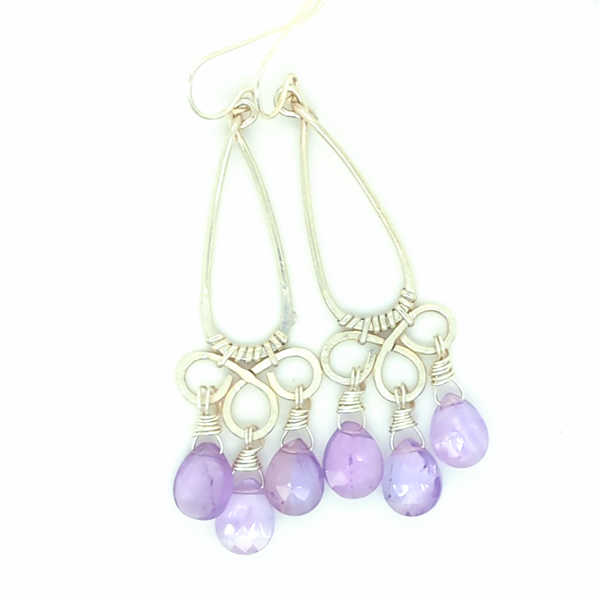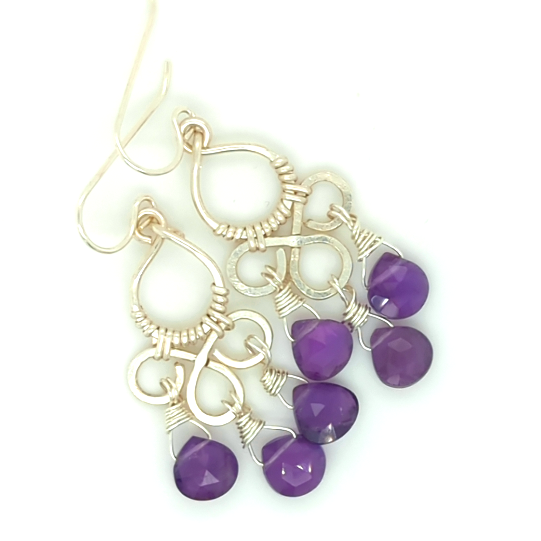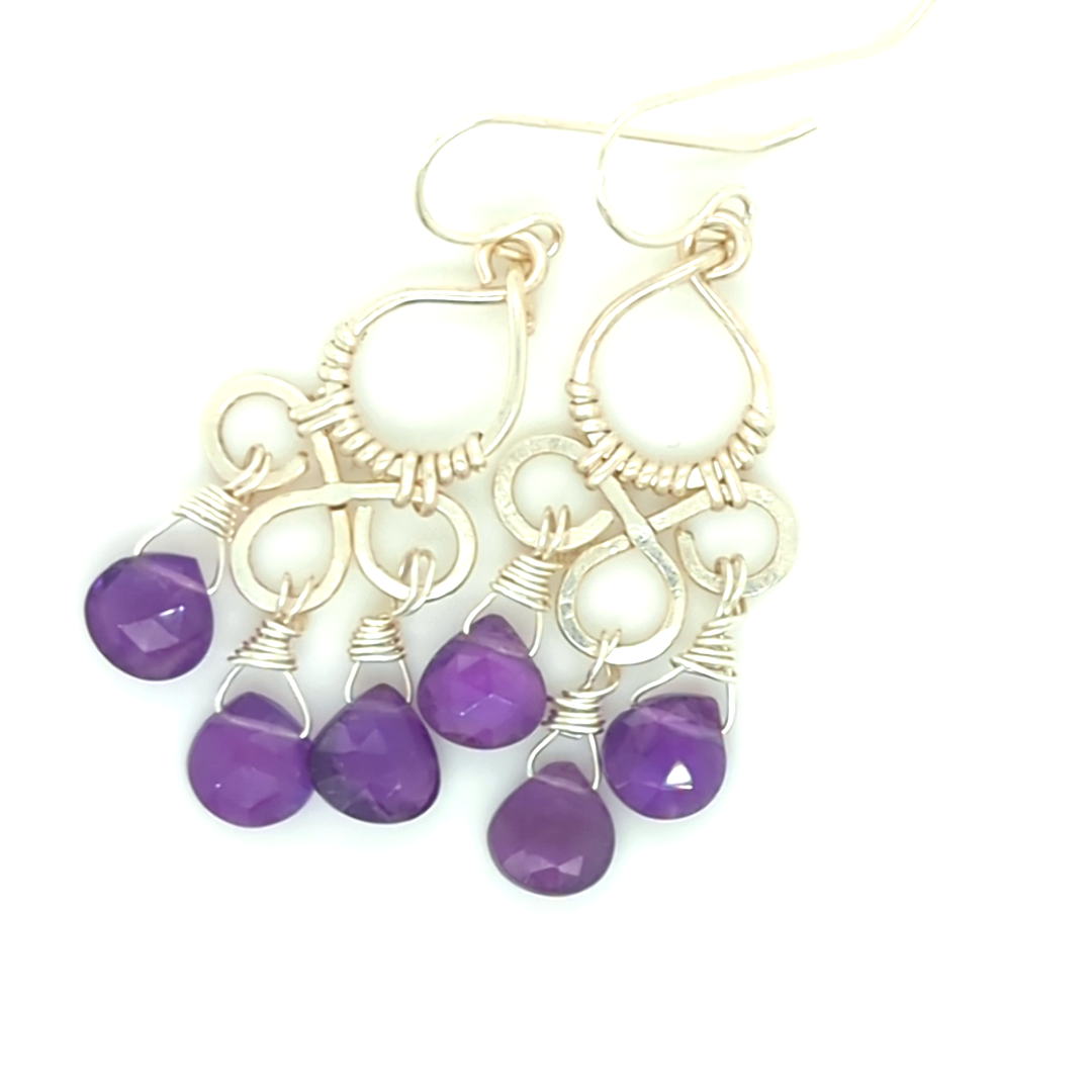 Illuminate your look with my Amethyst Chandelier Earrings. These elegant earrings feature either deep lavender or light purple faceted gemstone drops that dangle and swing from a sterling silver base, providing a touch of sparkle and shine. Elevate any outfit with this beautiful and versatile accessory.
