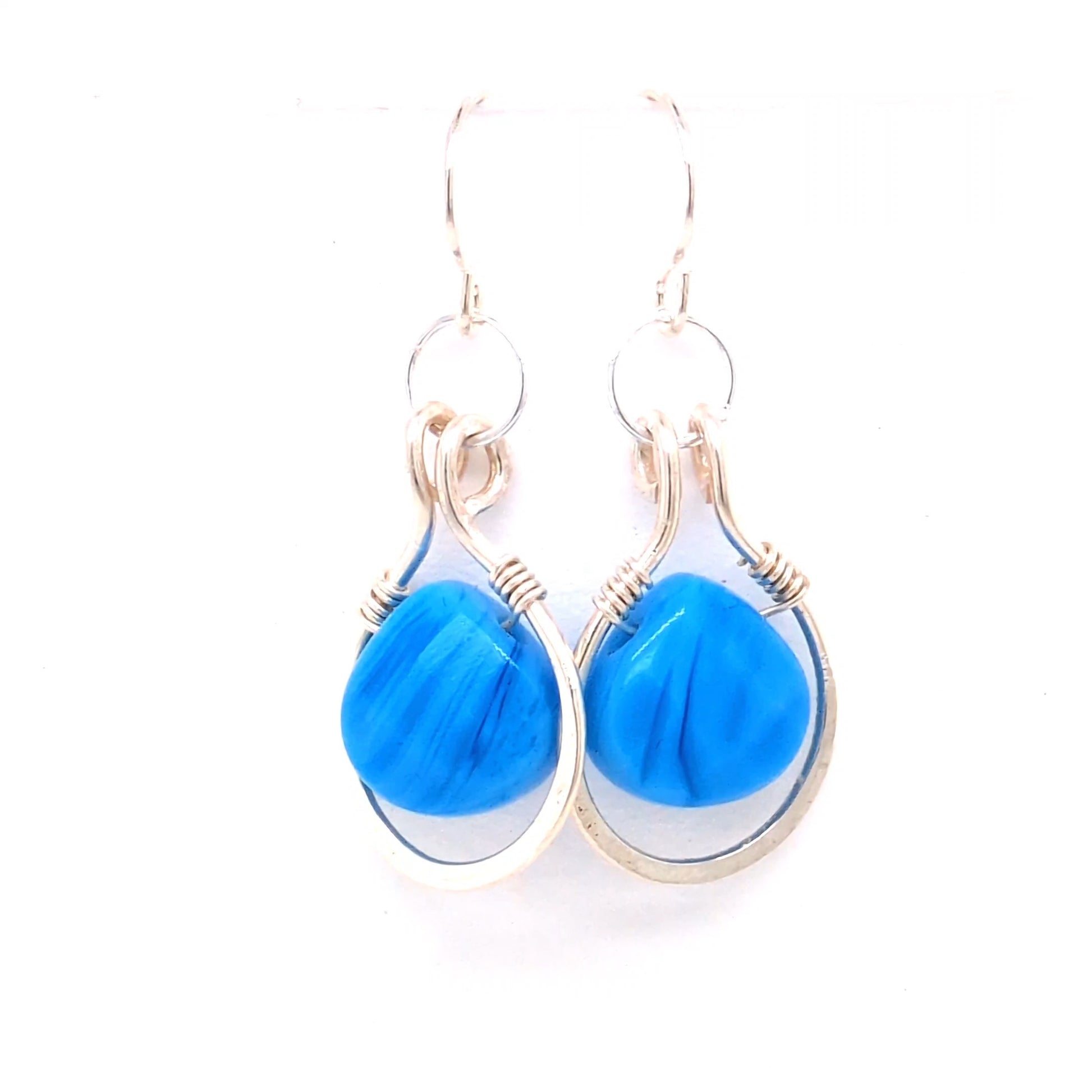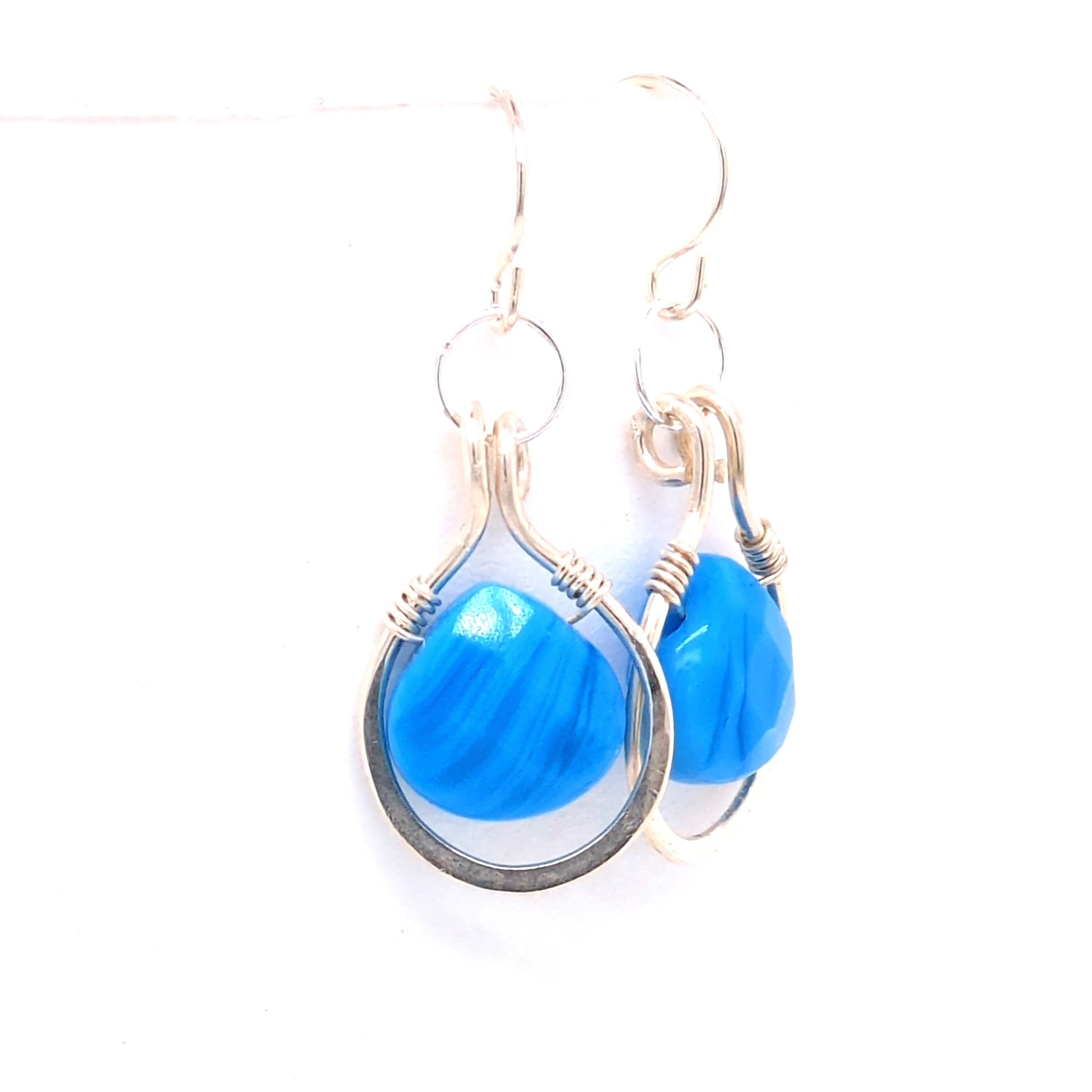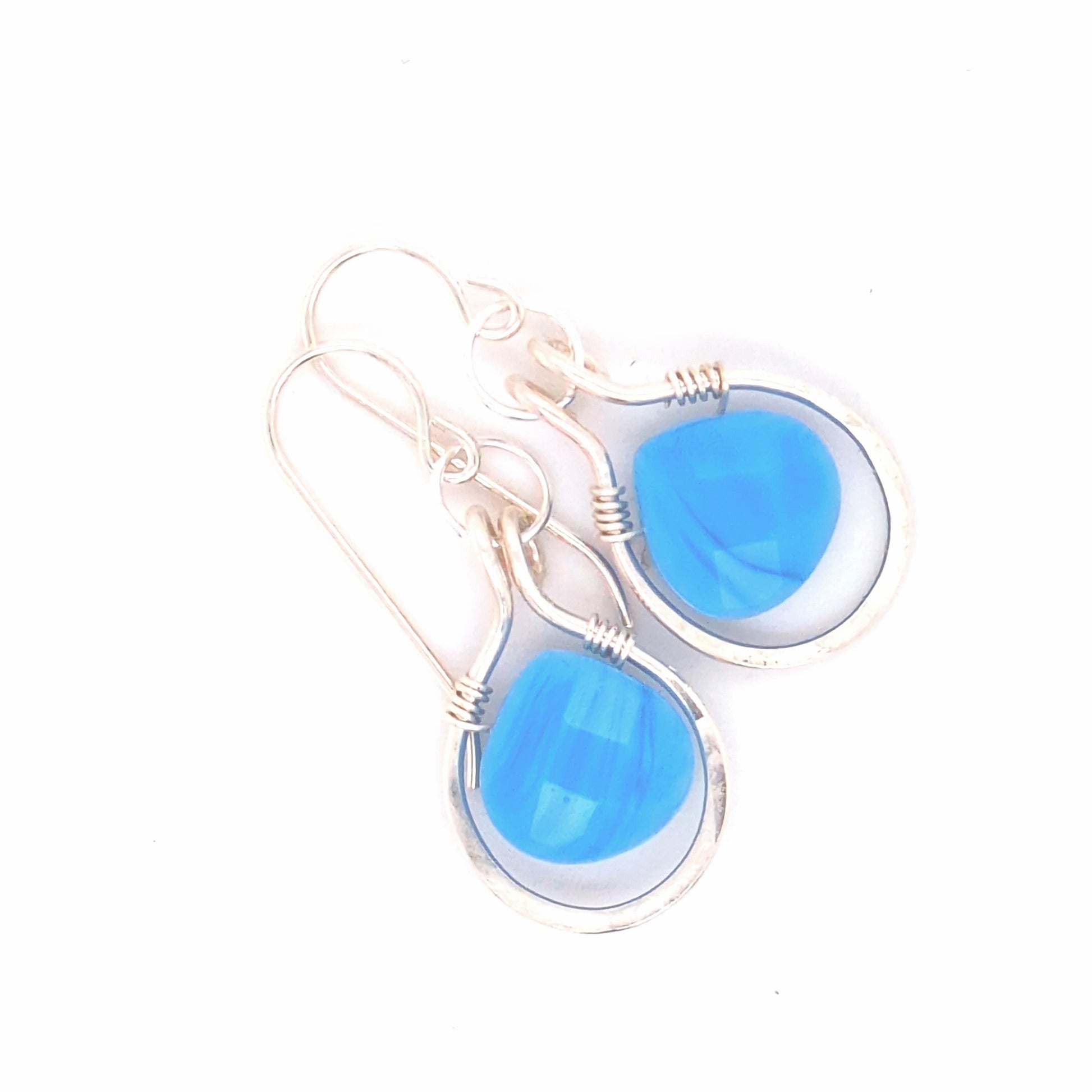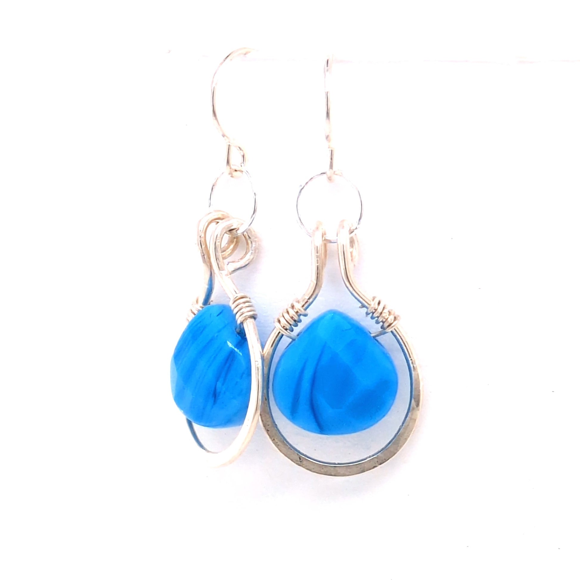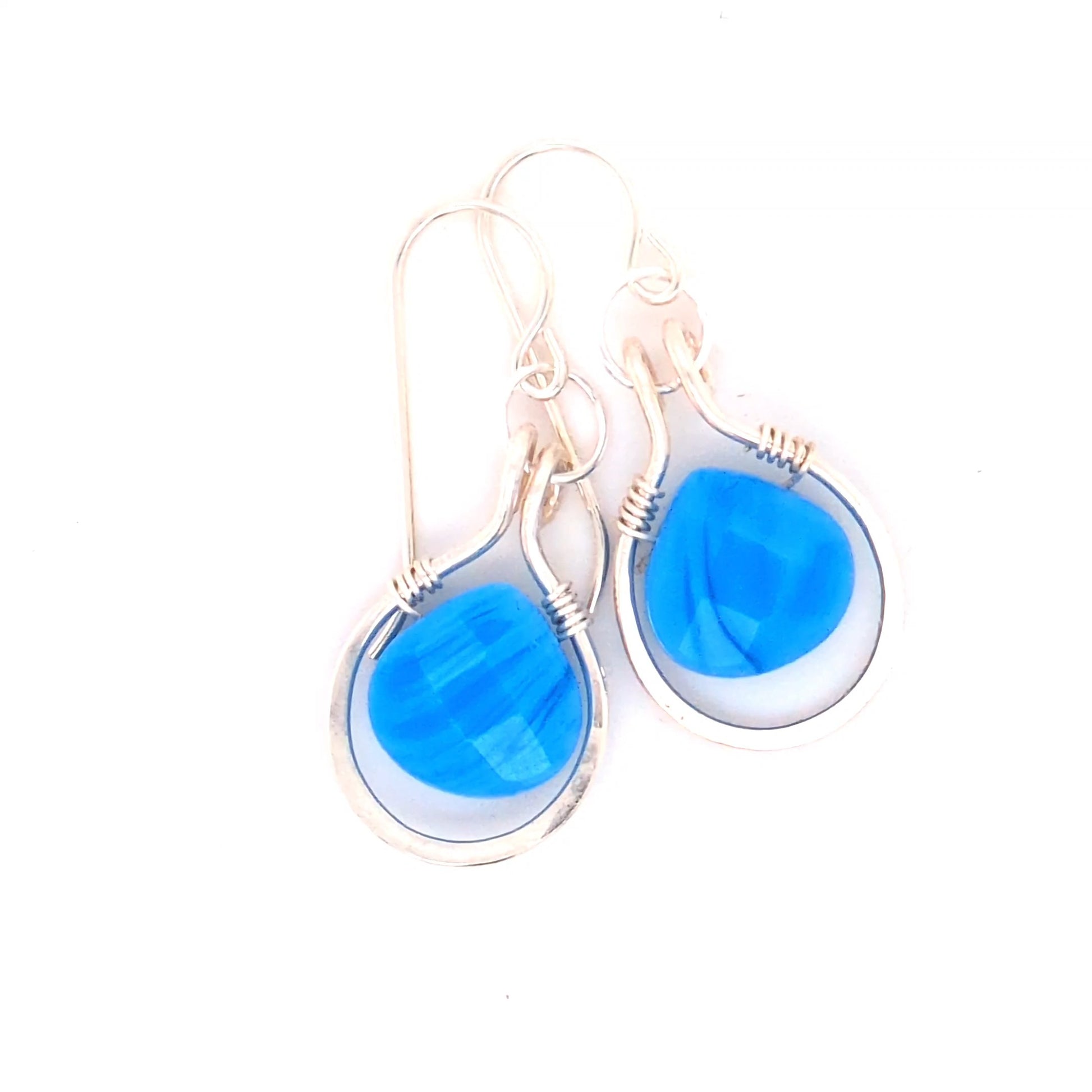These Blue Agate Earrings feature delicate light blue drops elegantly suspended on small sterling silver hoops. Their classic design adds a subtle touch of color and sophistication, making them perfect for everyday wear or special occasions. Elevate your style effortlessly with these timeless earrings.