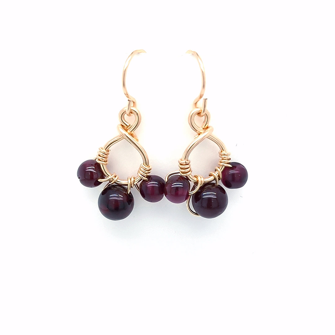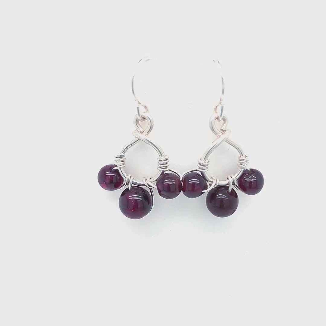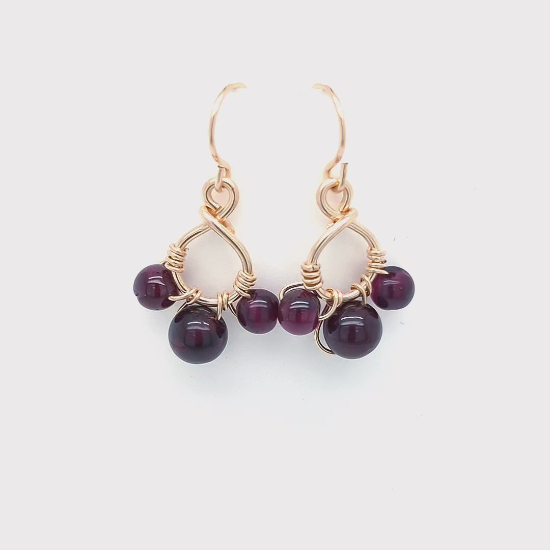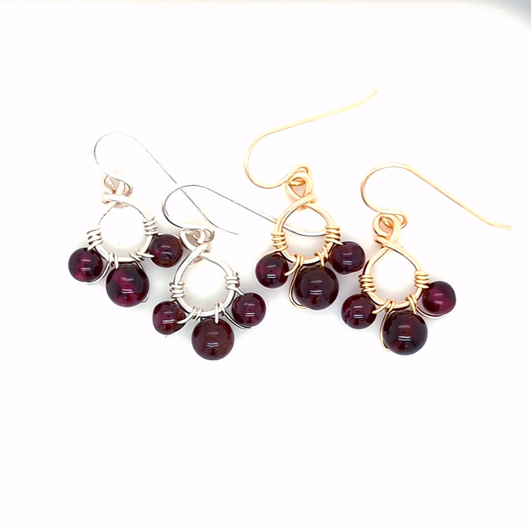 Intricately made with deep maroon beads, these Garnet Cluster Earrings feature a mini hoop wire wrap design. Their eye-catching hue adds a touch of vibrancy to any ensemble. An elegant jewelry piece that's perfect for special and everyday occasions. They are the perfect ladies earrings for every age. Light on the ear and so sweet.