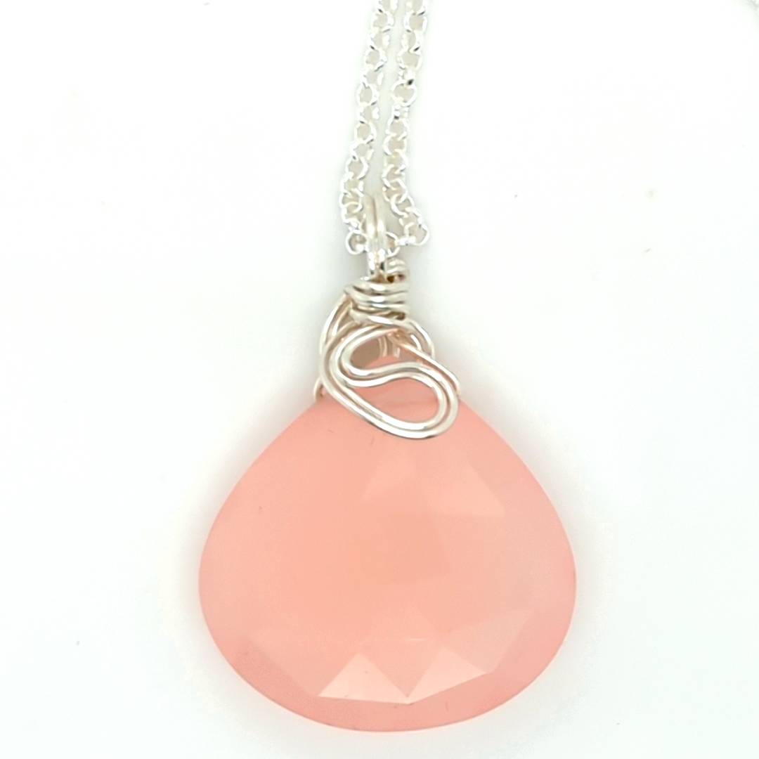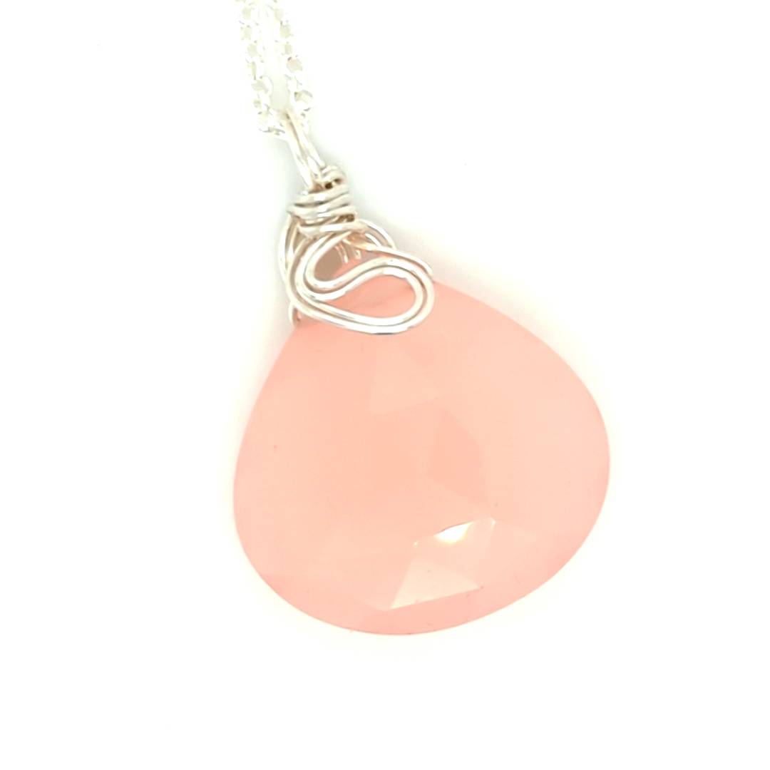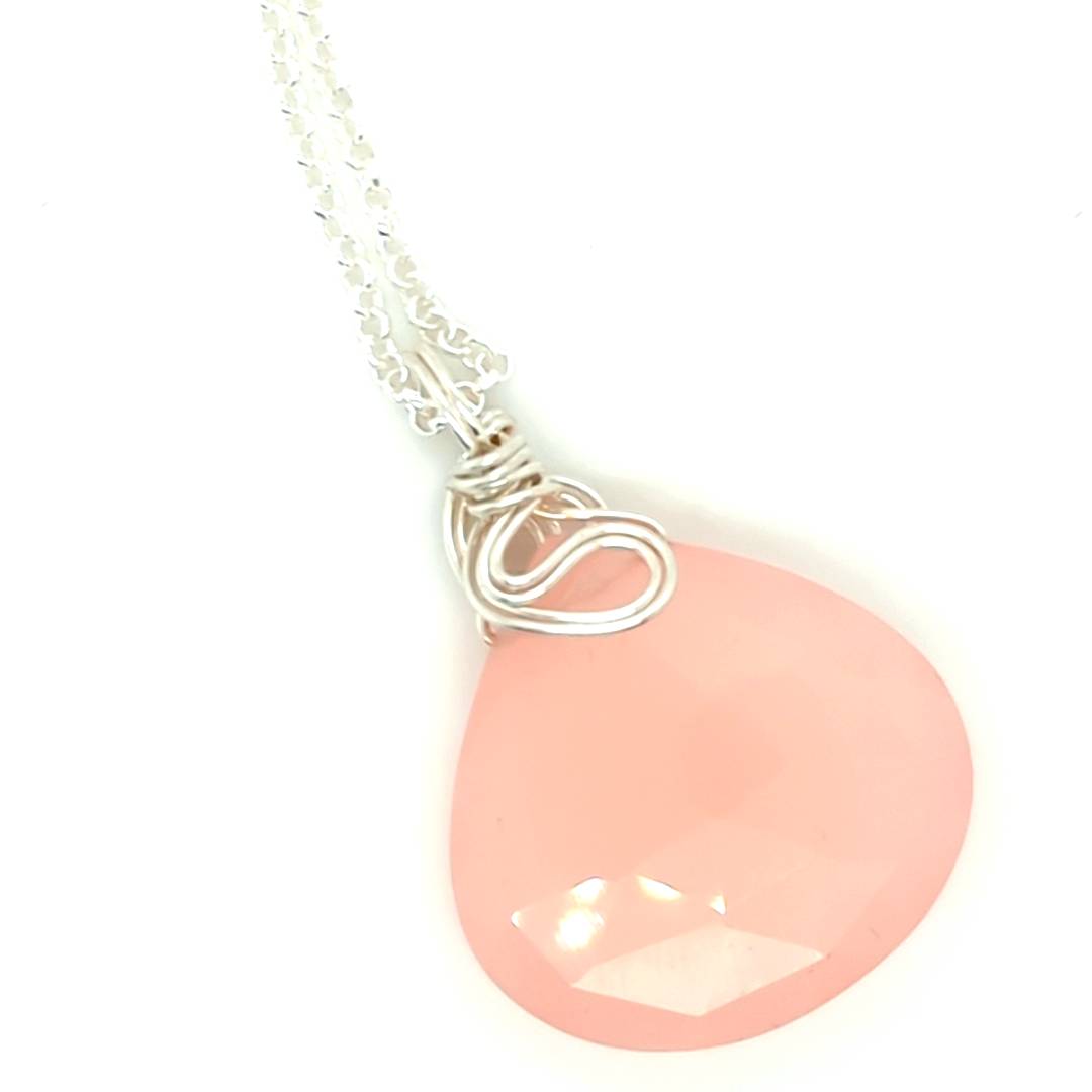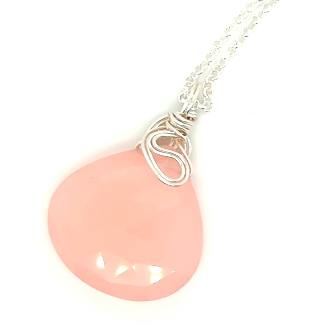 Experience the elegant beauty of my Large Peach/Pink Chalcedony Pendant. The teardrop hydro gem is expertly faceted for maximum sparkle. The sterling silver setting features a reversible design with a spiral and wave pattern. With its sleek design and stunning shine, this pendant is the perfect accessory for any occasion.