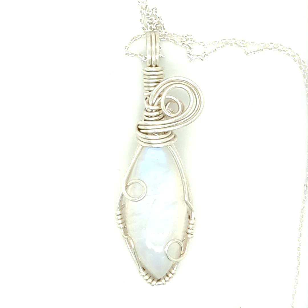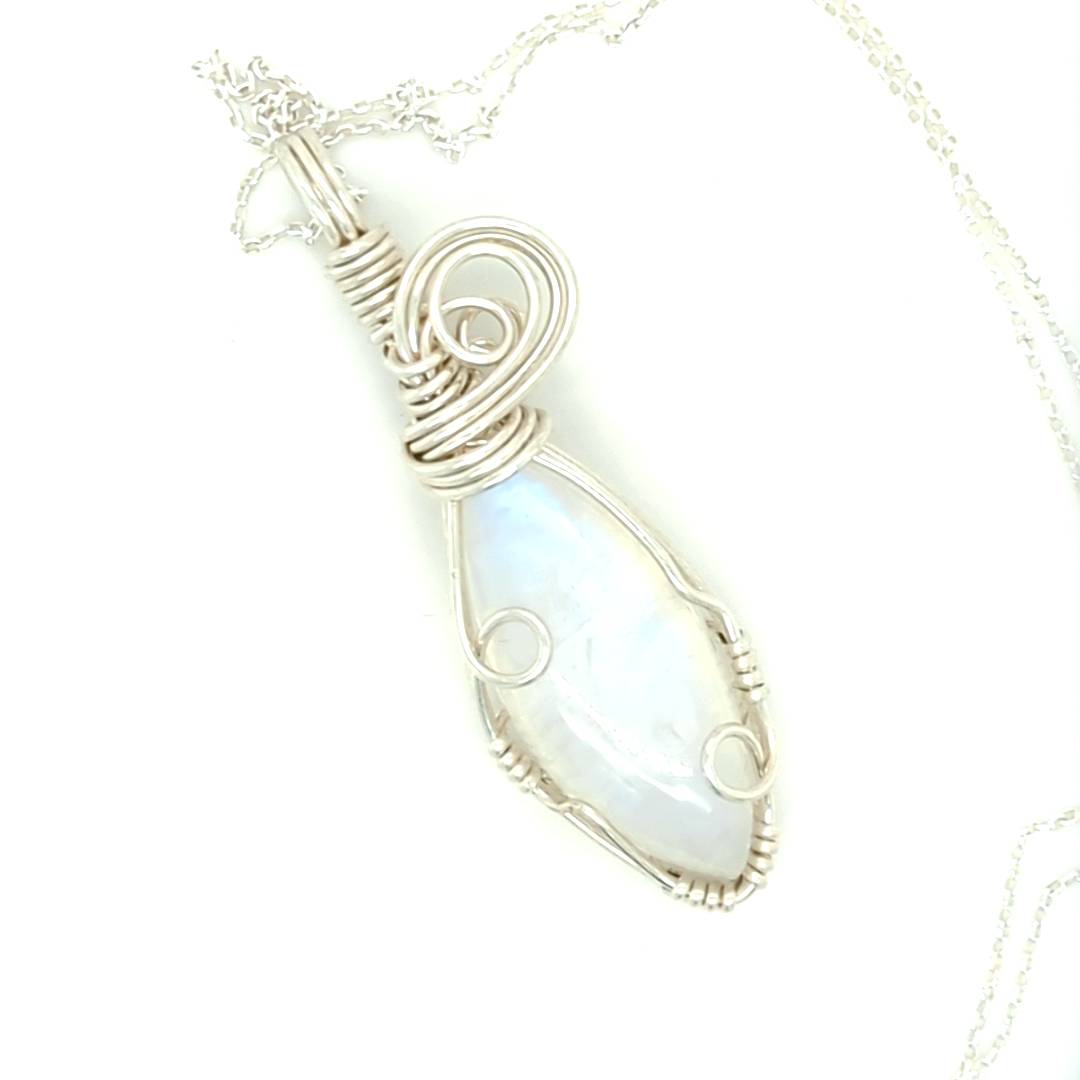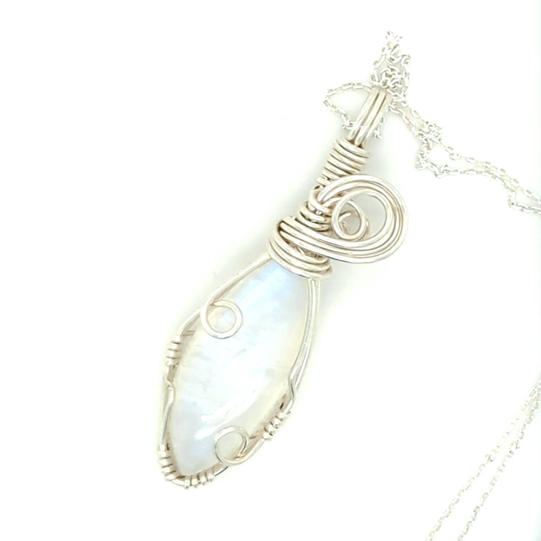 This sterling silver pendant features a stunning rainbow moonstone, known for its mesmerizing color reflections that dance in the light. Reversible for versatile wear, this gemstone pendant is a beautiful and unique addition to any jewelry collection. Discover its beauty and elegance for yourself.