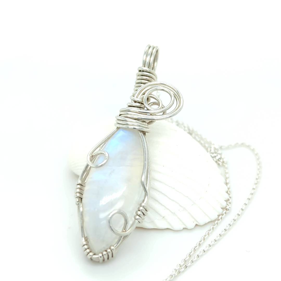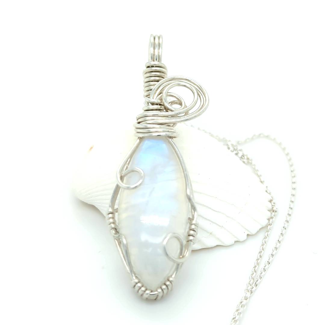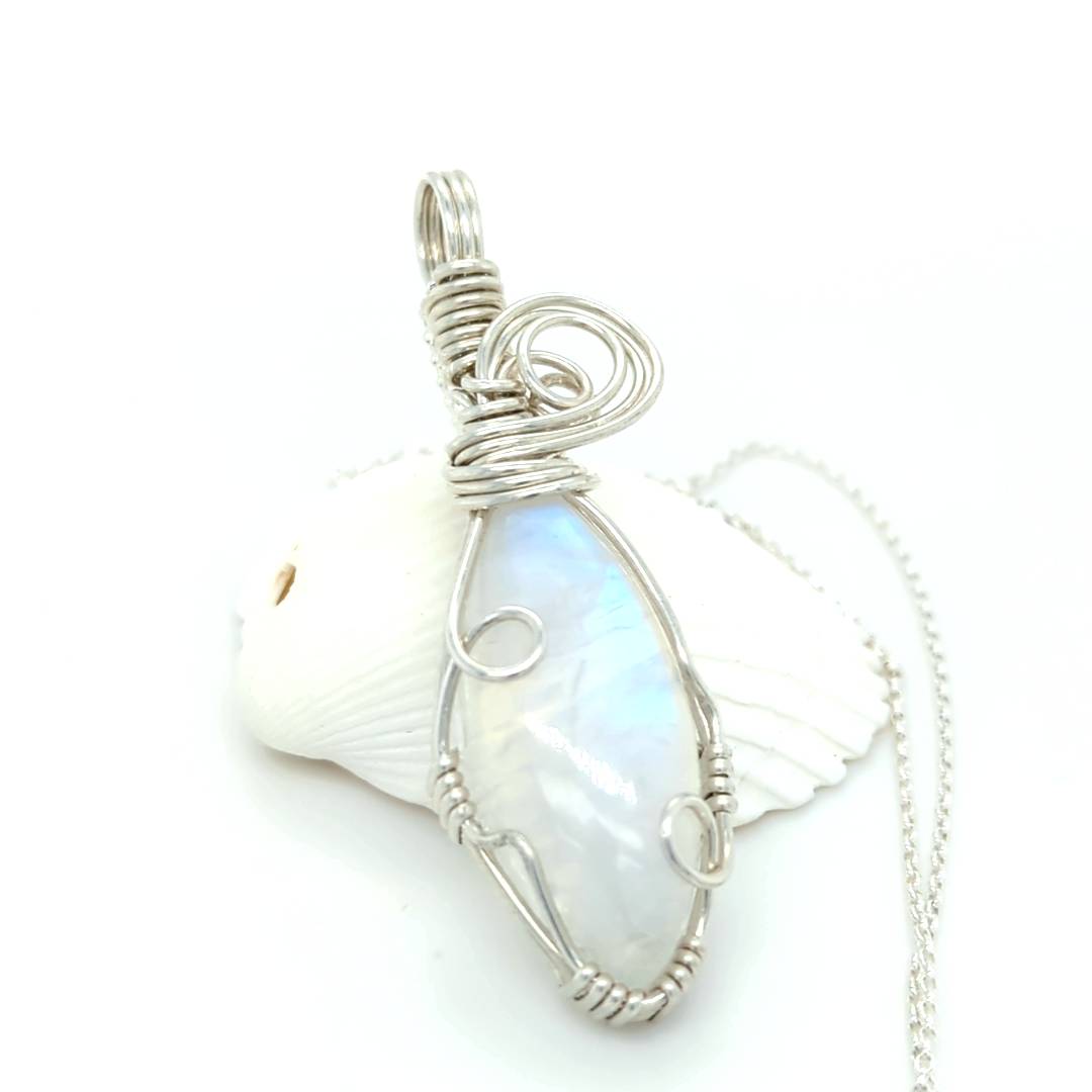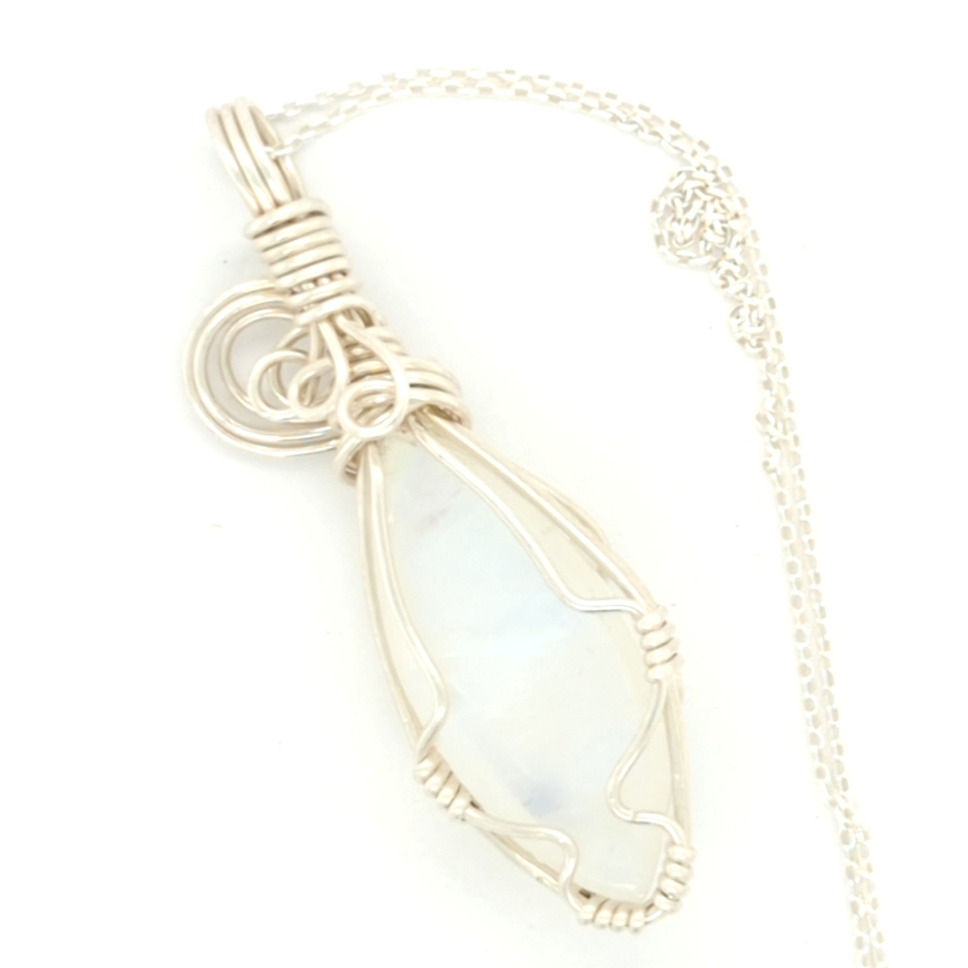 This sterling silver pendant features a stunning rainbow moonstone, known for its mesmerizing color reflections that dance in the light. Reversible for versatile wear, this gemstone pendant is a beautiful and unique addition to any jewelry collection. Discover its beauty and elegance for yourself.