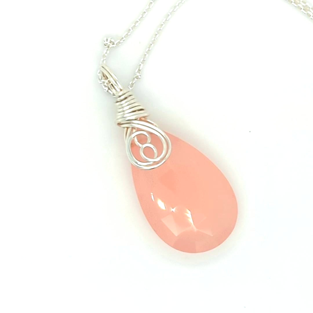 Crafted by hand with precision and expertise, this Peach/Pink Chalcedony Pendant features a faceted Hydro gemstone for a stunning shine. The reversible sterling silver detailing adds versatility to this teardrop gem, making it the perfect addition to any jewelry collection. Elevate your style with this unique and elegant pendant.