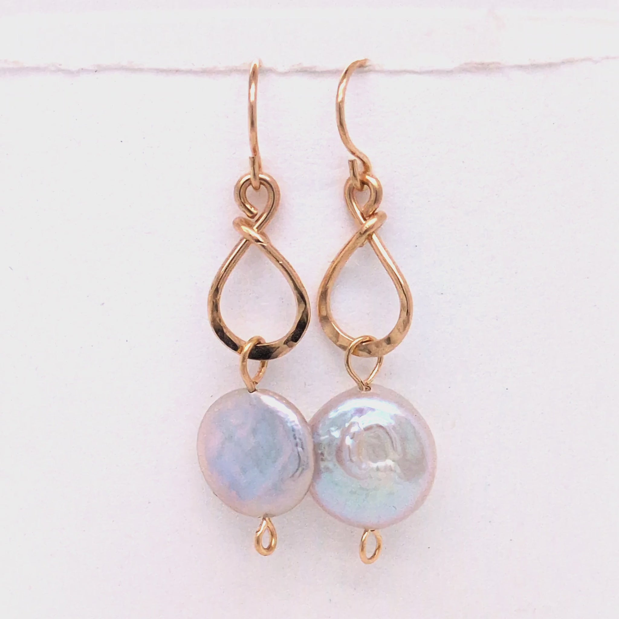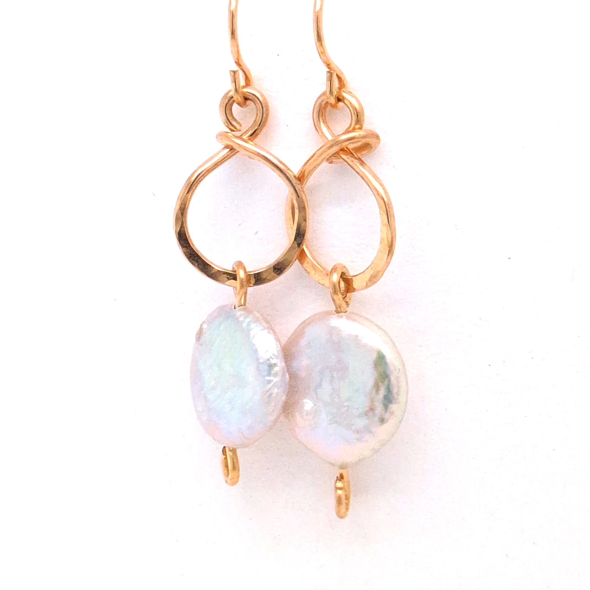 Lustrous coin pearls suspended from artisan-crafted hoops create an understated elegance perfect for both everyday wear and special occasions. Each pair showcases the natural beauty of pearl with the refined geometry of hand-formed metalwork. The drop design offers graceful movement while maintaining a sophisticated silhouette. An investment piece that transcends seasonal trends and complements any wardrobe.