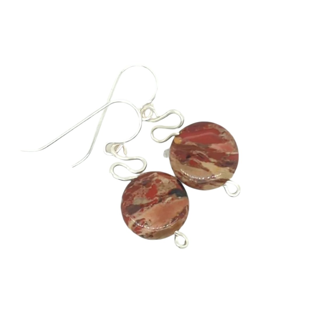 Enhance your look with my Red Jasper Earrings. These sterling silver infinity design drop earrings feature a captivating gemstone drop with variations of brown, black, and brick red. The perfect blend of casual and interesting.