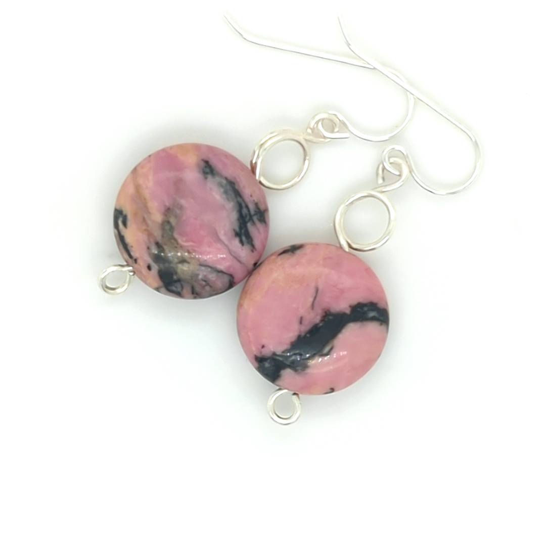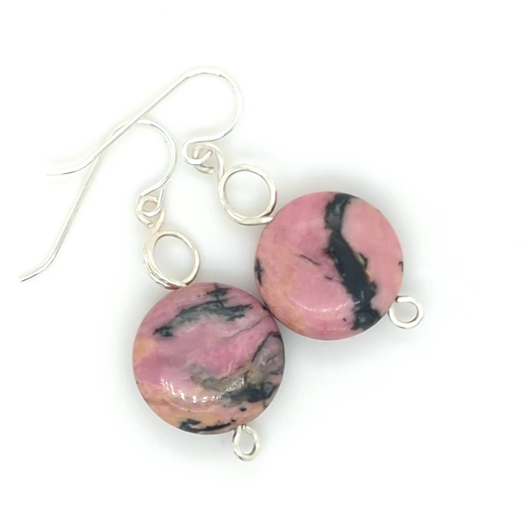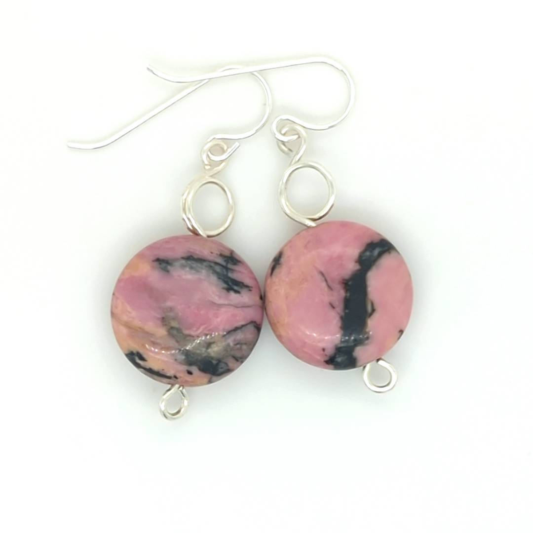 These stunning Rhodonite Coin Earrings feature beautiful pink and black gemstones hanging from a sterling silver loop design. The perfect addition to any outfit, these everyday earrings add a touch of fun and sophistication. Made with high-quality materials, these earrings are both stylish and durable.