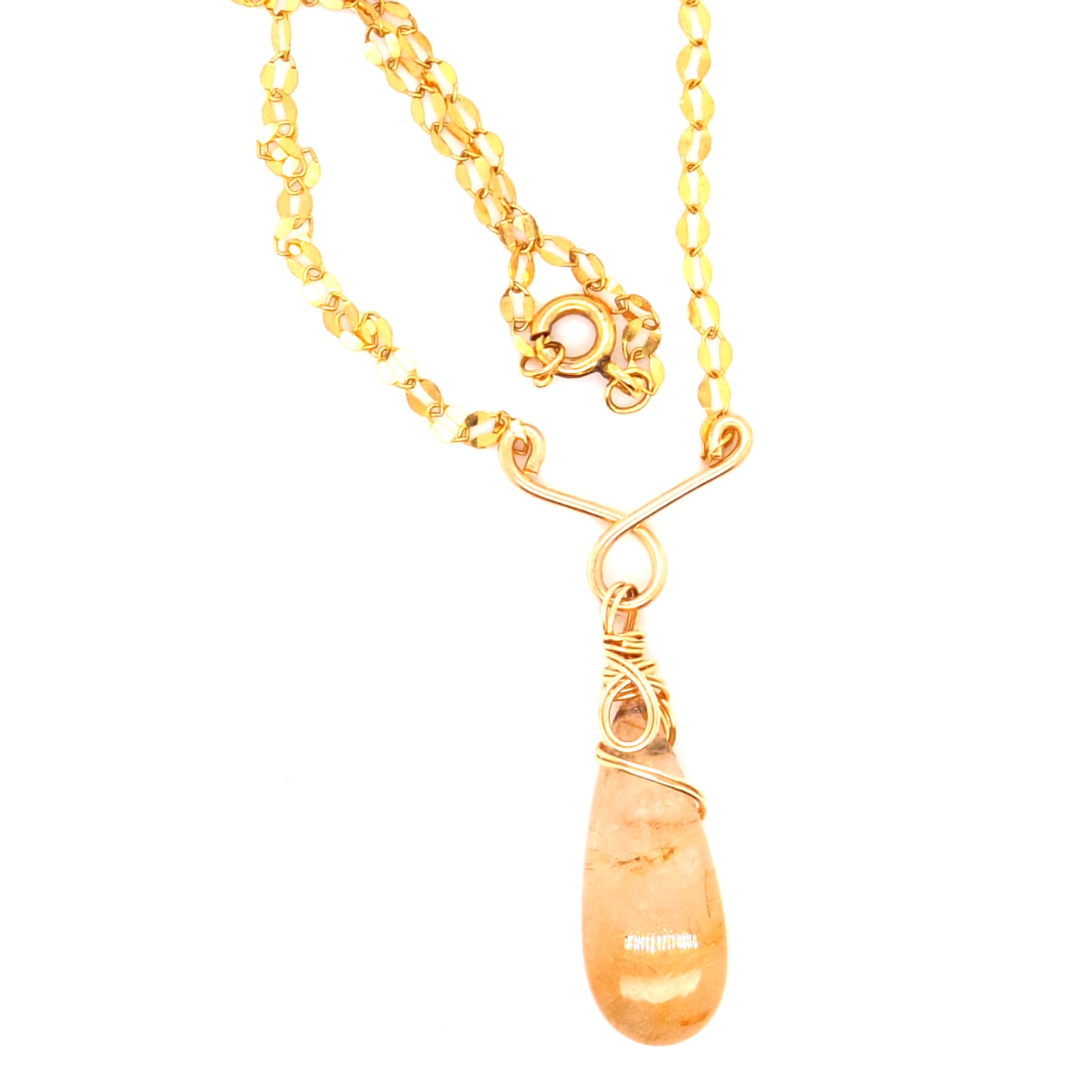 This refined necklace presents a polished natural gemstone that radiates brilliance through expertly crafted faceting. A reversible spiral wrap technique secures the stone with artistic precision, while a traditional clasp mechanism guarantees reliable closure. The 17-inch gold-toned chain provides understated elegance that harmonizes with the gemstone's luminous qualities, positioning this piece as an essential addition to any collection—equally compelling for refined daily wear or elevated occasions.