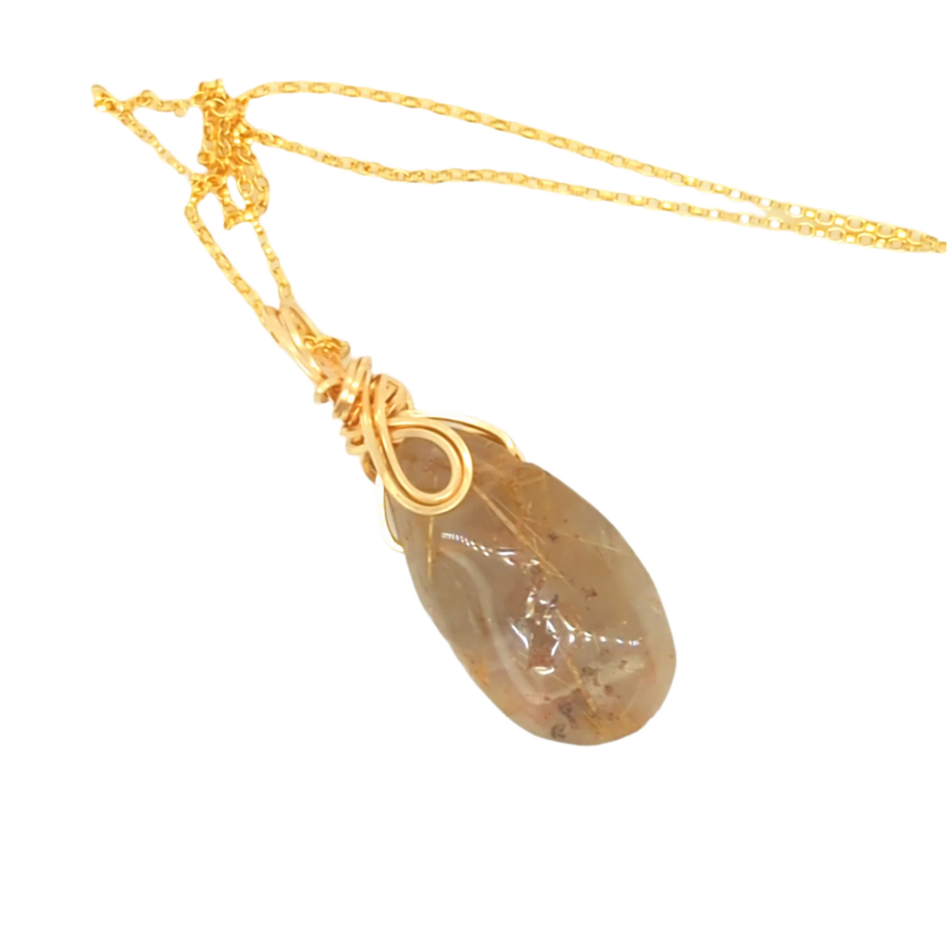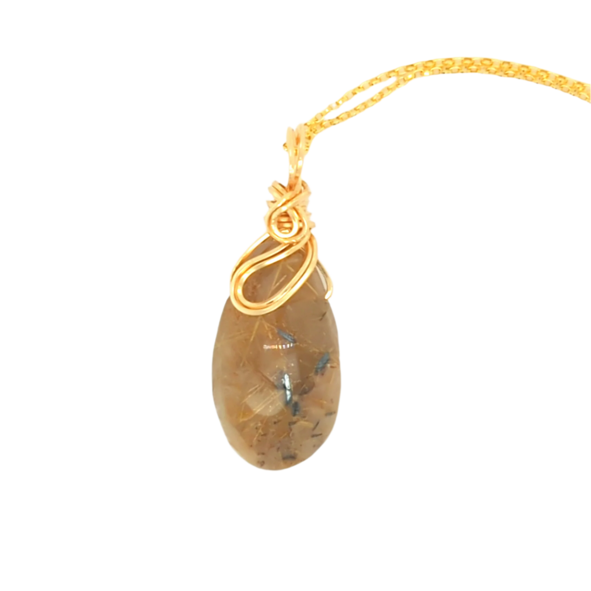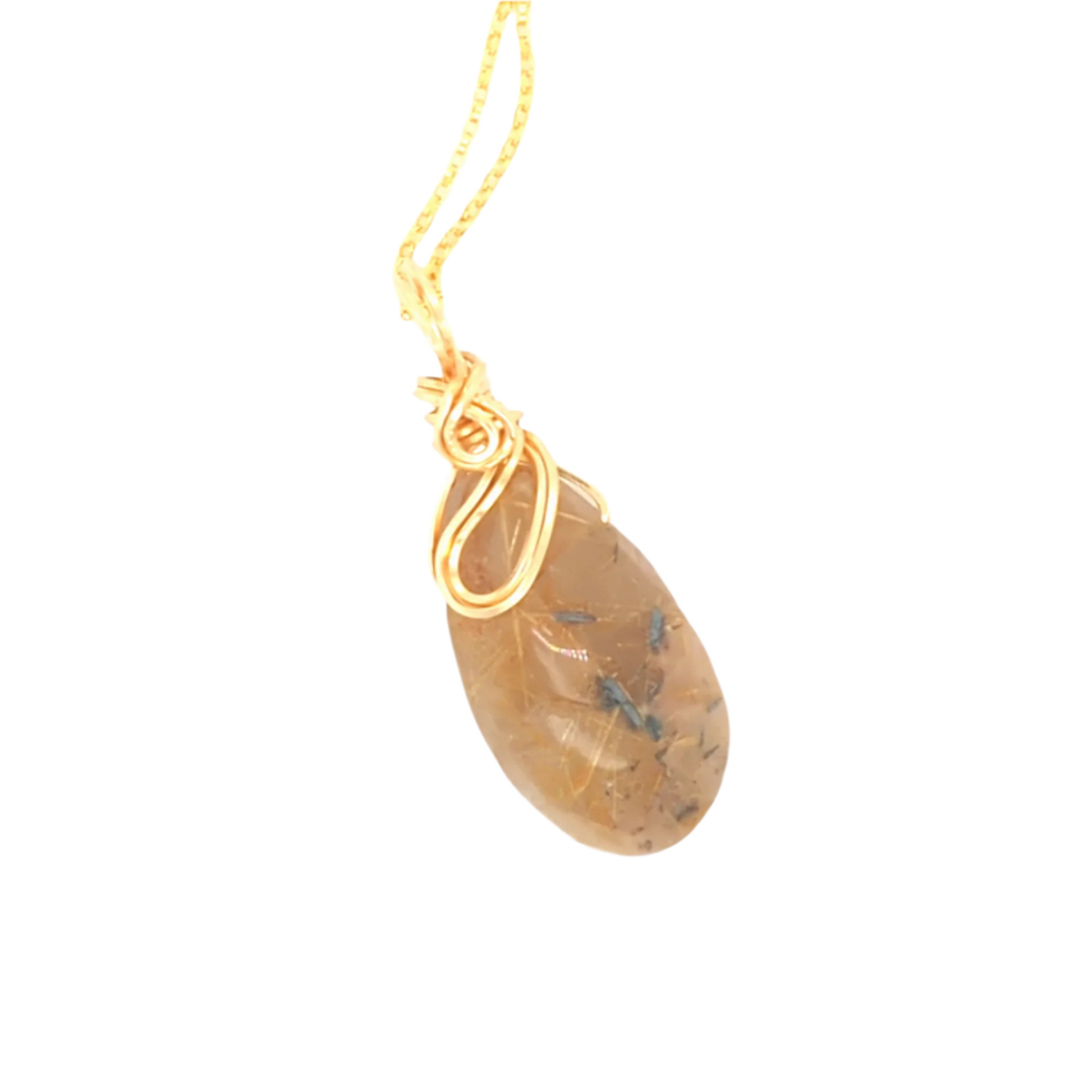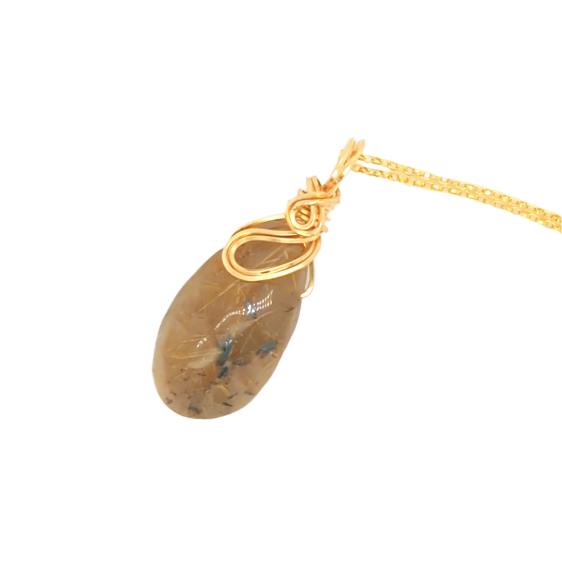Experience elegance with my Rutile Pendant Gold. Made with a stunning gold rutile quartz and a hand-crafted reversible design, this pendant is both versatile and sophisticated. The gold spiral top adds a touch of unique charm. Elevate your style with this one-of-a-kind piece.