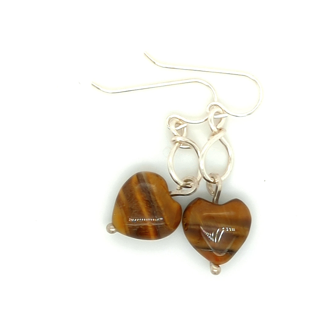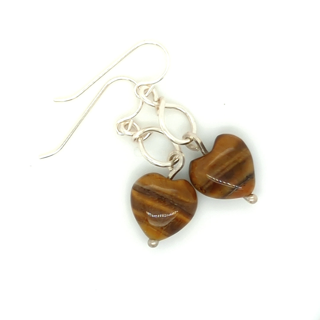 Tiger Eye Heart Earrings