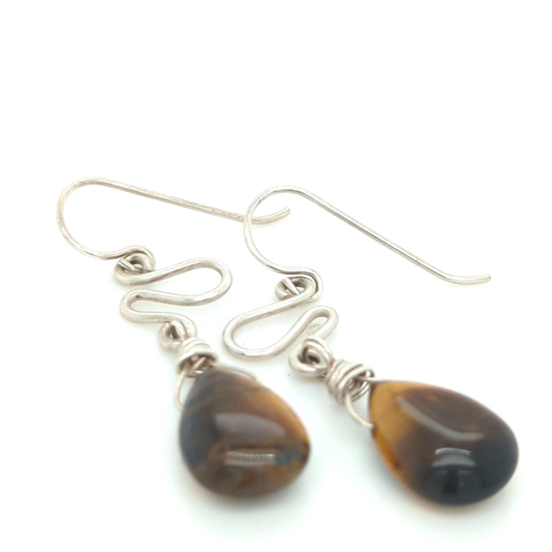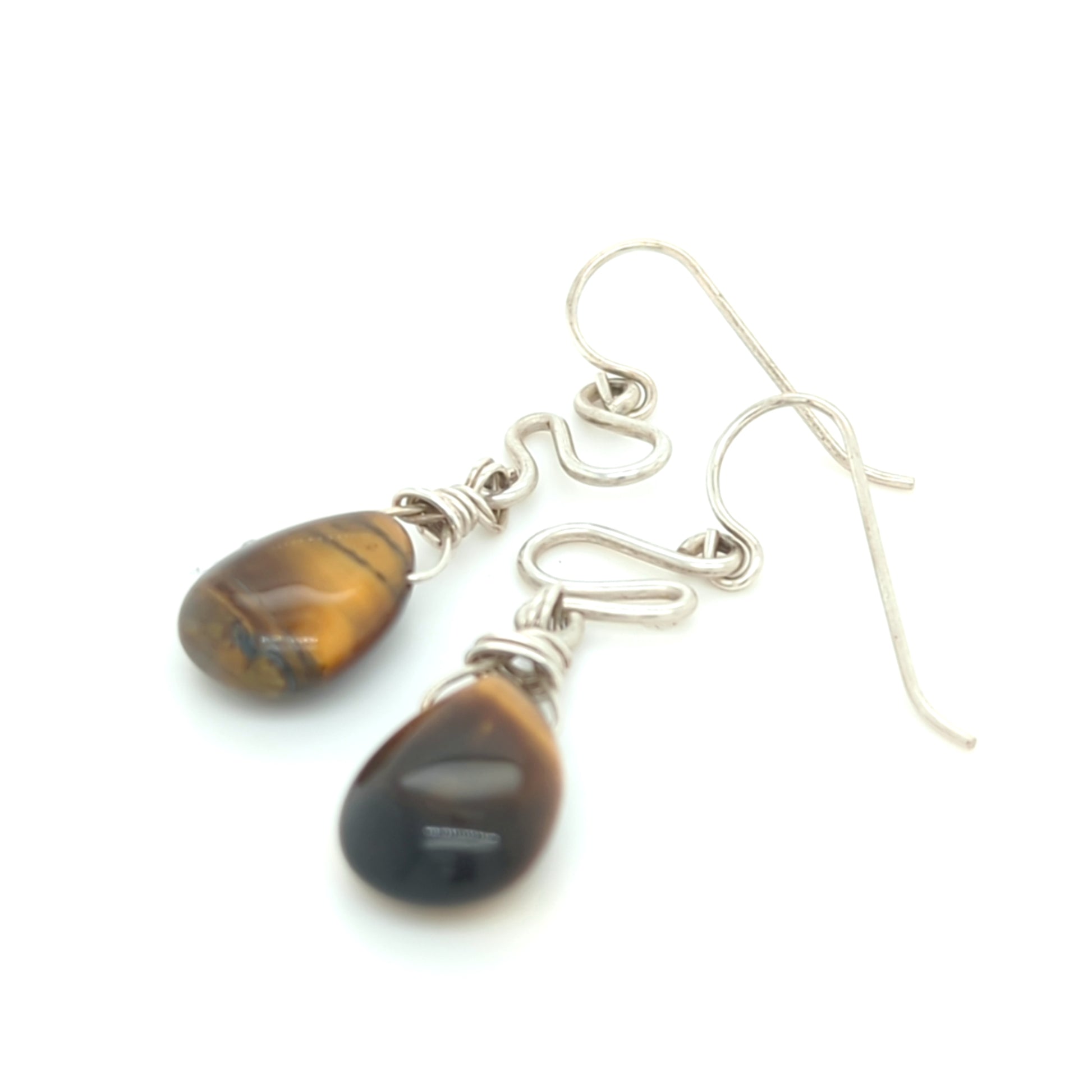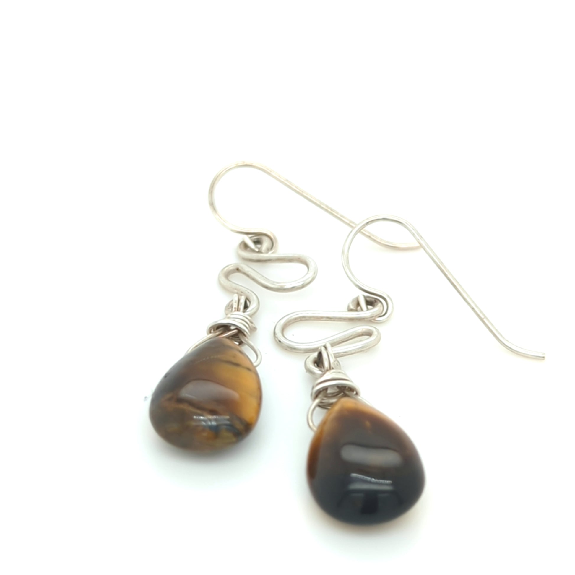 Elevate your look with my Tiger Eye Infinity Earrings. Hand formed from sterling silver, these timeless earrings feature a delicate infinity symbol and stunning teardrop gemstone drops. Add a touch of elegance and sophistication to any outfit with these versatile and eye-catching earrings.